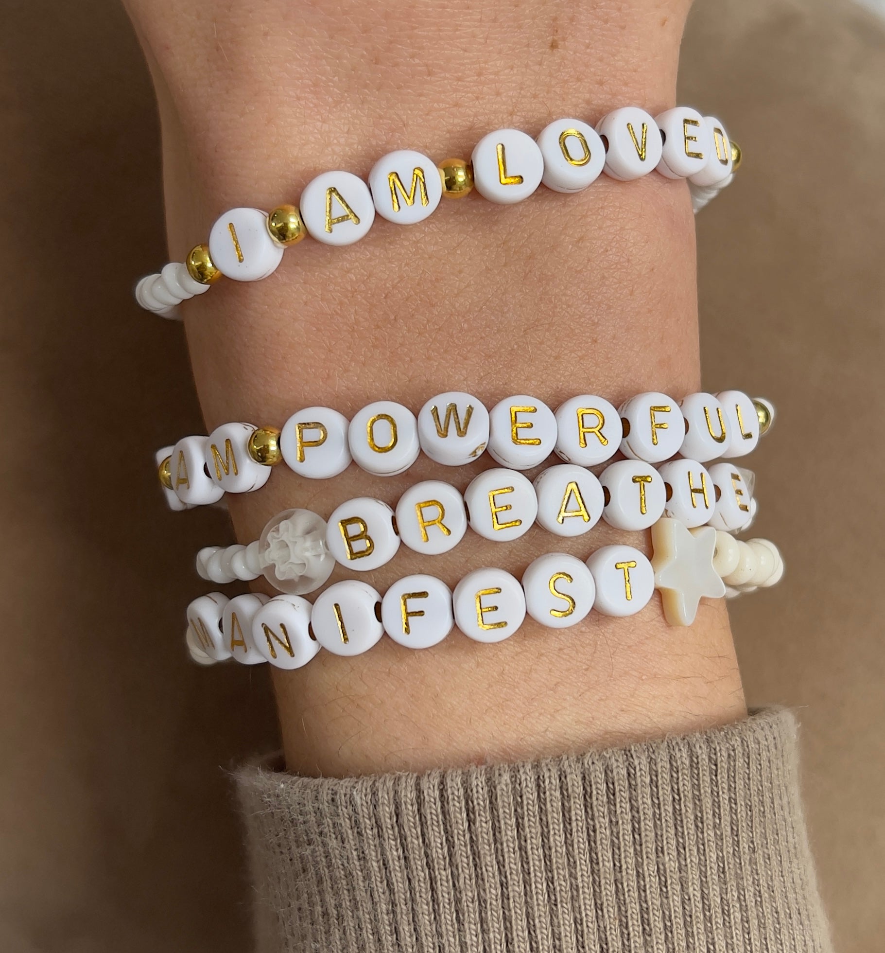 Wear these bracelets anywhere you go for a little positivity boost!